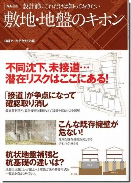 日経アーキテクチュア: 編 日経BP, 2010年, 200p, 257×182mm, soft 日経アーキテクチュアの直近10年間の関連記事にさらに書き下ろしを加え、 見かけでは分からない敷地・地盤のリスクの見抜き方やトラブル事例、解決ノウハウを詰め込んだ一冊。 設計者必読のトラブル事例・判例が満載。 カバーに多少スレ、キズ、ヤケ。 小口天地、ページ周縁部多少ヤケ。 その他良好。
