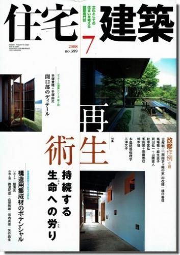建築資料研究社, 2008年, 160p, 297×210mm, soft 第1特集 再生術 持続する生命への労り 吉村順三設計(湘南茅ヶ崎の家)1967の改修 第2特集 シリーズ・在来技術をカスタマイズする6 構造用集成材のポテンシャル 表紙に多少スレ、キズ、ヤケ、上部一部ヨレ。 小口天地、ページ周縁部多少ヤケ。 その他良好。
