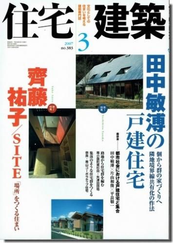 建築資料研究社, 2007年, 160p, 297×210mm, soft 第1特集 田中敏溥の戸建住宅― 個から群の家づくりへ、隣地境界線共有化の作法 「益子の家」「玉川学園の家」など住宅作品8題を紹介。 座談会: 都市社会における戸建住宅と集合 第2特集 齊藤祐子/SITE― 「場所」をつくる住まい 「東中野 PAO COMPOUND」「グループホームあおぞら」など7作品を収録。 表紙に多少スレ、キズ、ヤケ。 小口天地、ページ周縁部多少ヤケ。 その他良好。