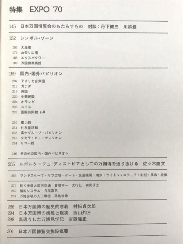 豊富な写真、各種建築データ、図面、技術解説など、まさに万博建築の全貌を紹介する1冊まるごとの貴重な大特集号。