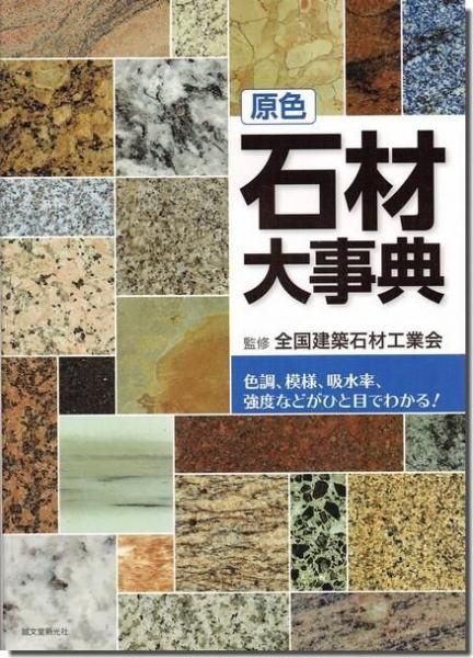全国建築石材工業会: 監修 誠文堂新光社, 2016年, 239p, 256×182mm, soft 建築石材として日本で流通している石種のすべてを網羅した石材の大事典。 大理石、花崗岩を中心に、砂岩、スレート、軟石、テラゾ、あわせて200種以上の石種を紹介。 色調や模様がわかる岩肌の写真とともに、産出国、みかけ比重、吸水率、圧縮強度などのデータがひと目でわかるようになっている。 カバーに多少スレ、キズ、ヤケ。 小口天地、ページ周縁部多少ヤケ。 その他良好。