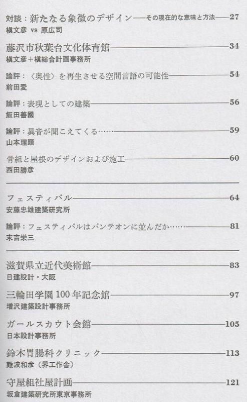彰国社, 1984年, 146p, 305×230mm, soft 新たなる象徴のデザイン その現在的意味と方法 槇文彦VS原広司 藤沢市秋葉台文化体育館 槇文彦+槇総合計画事務所 フェスティバル 安藤忠雄建築研究所 表紙にスレ、キズ、ヤケ。 小口天地、ページ周縁部ヤケ。 天地に事務所印。 その他良好。